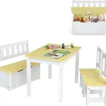 [ 2-in-1 Design with Practical Toy Storage Bench ]: The storage bench maximizes space utilization and encourages children to develop good organizing habits. The under-seat storage compartment provides ample space for storing toys, snacks, books, and more. The safety groove and hinge design allow kids to safely open the lid. Additionally, the bench seat can double as a shoe stool for added convenience.