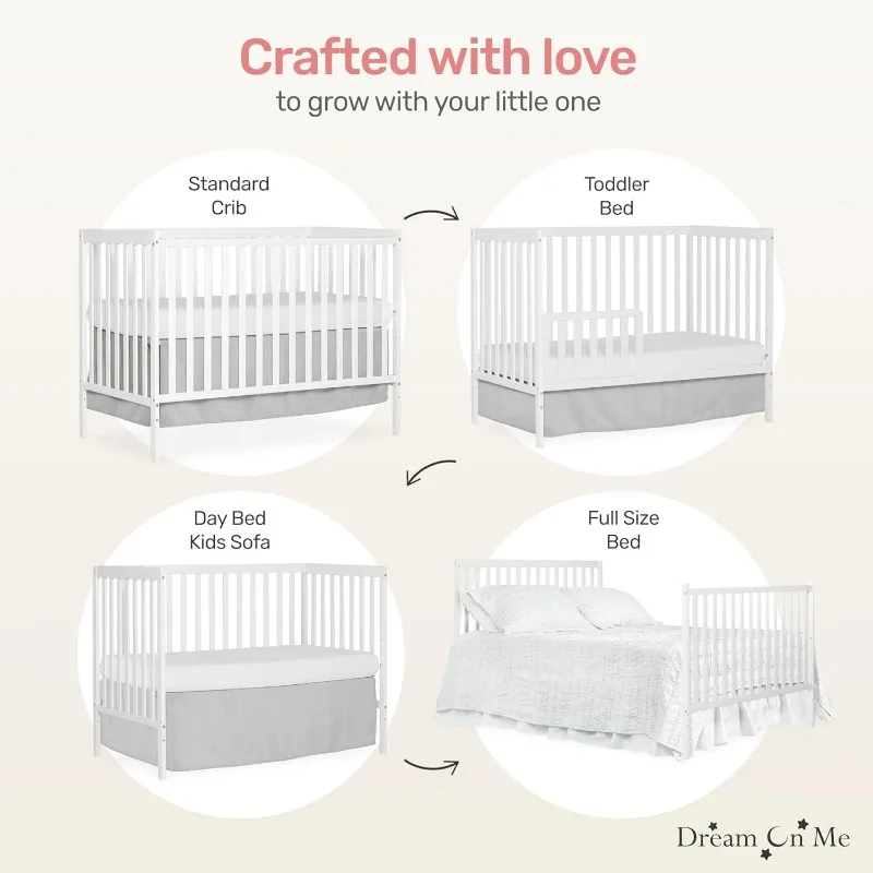 - MATTRESS COMPATIBILITY – The Synergy 5-in-1 Convertible Crib is a standard full size crib and measures 53.0″ L x 29.0″ W x 39.0″ H inches; For the best fit, we recommend any or Evolur full-size, non-toxic, Greenguard certified mattress