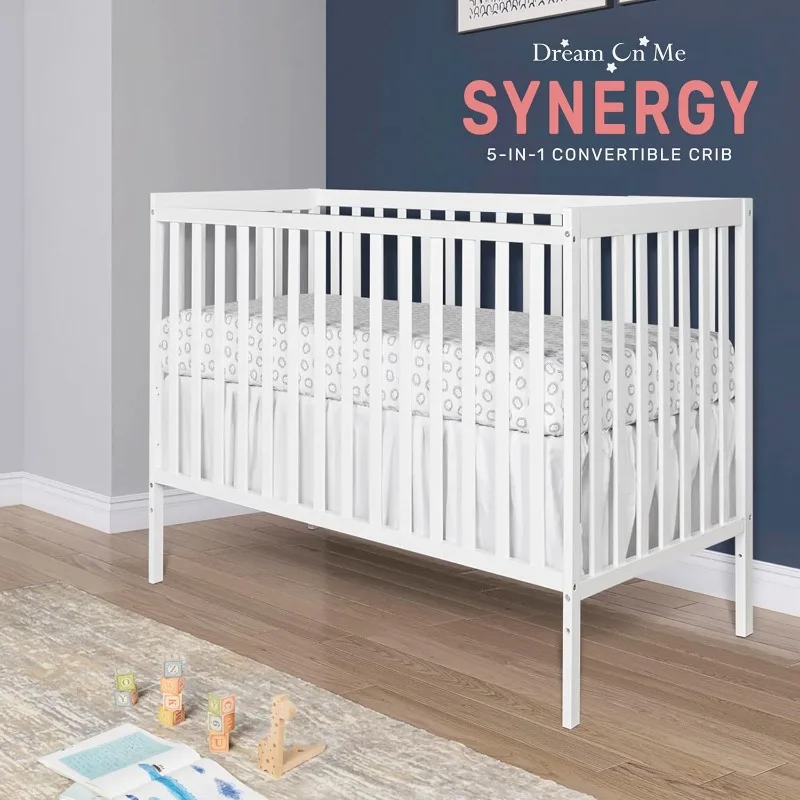 - 5-IN-1 CONVERTIBLE CRIB – A lifetime investment, the Synergy grows with your child, easily converting from a crib into a toddler, day and full-size bed; Toddler guardrail, stabilizer and full-size rail sold separately; Features 3 mattress height settings