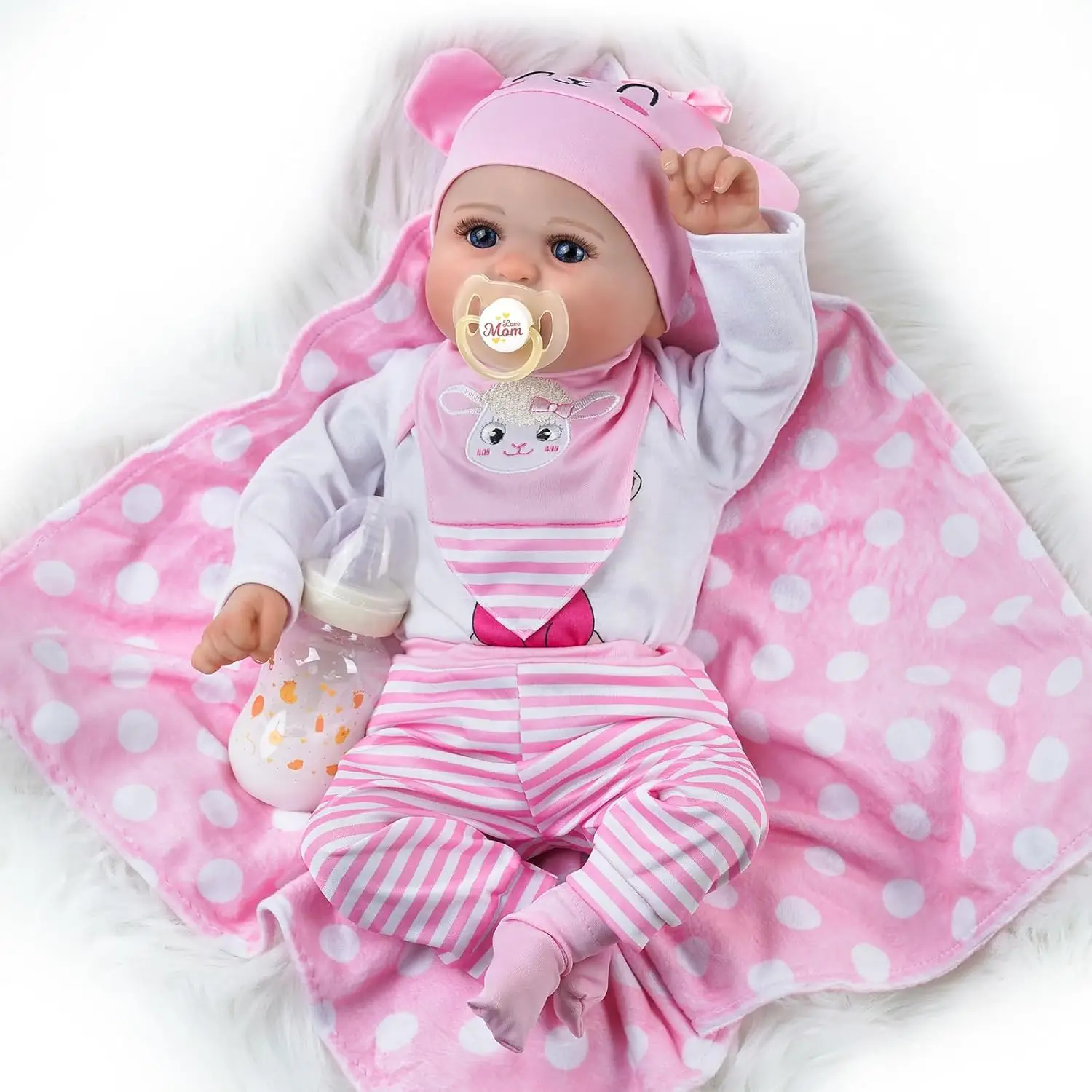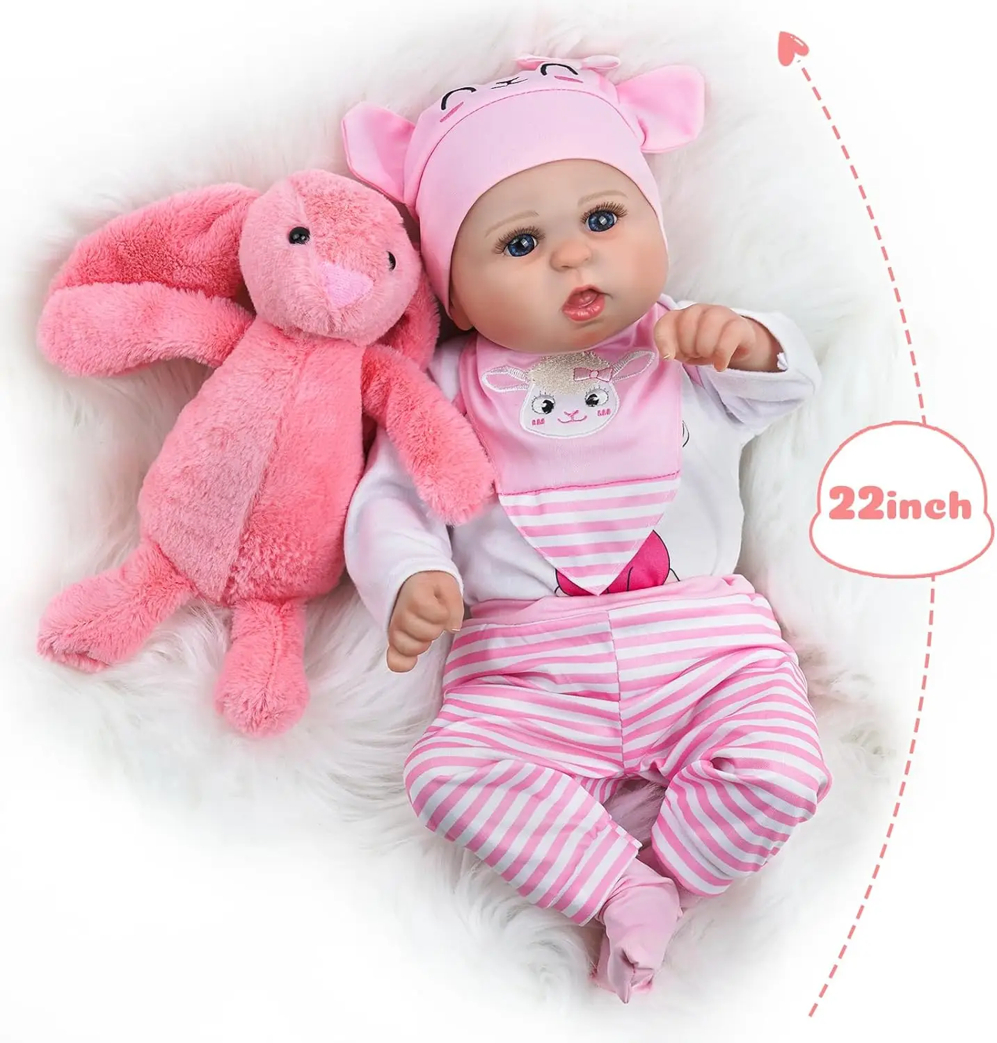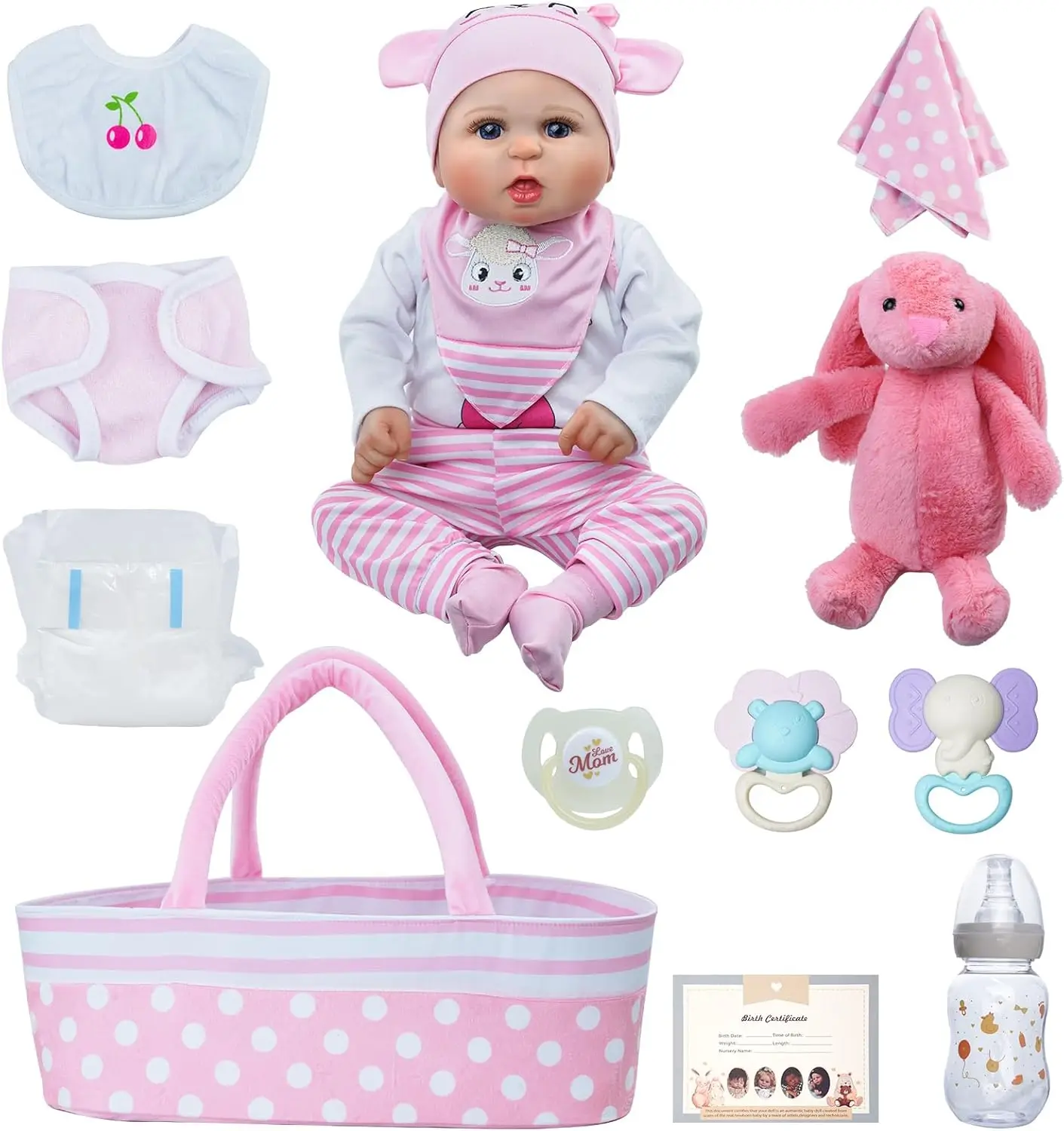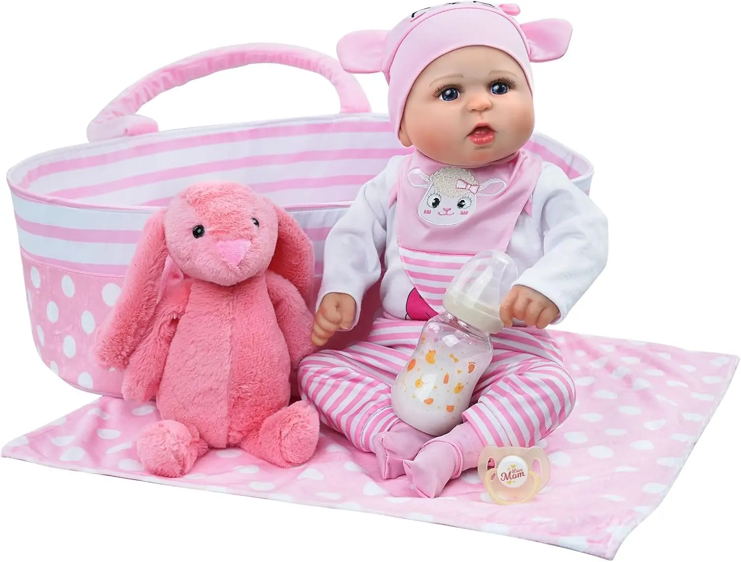 【PACKAGE INCLUDE】Our 8 pcs reborn baby dolls clothes set come with 1*pink dot bassinet,1*pink onesie,1*diaper,1*bib,1*plush toy,1*towel,1*baby hat and 1*bottle of total 8 accessories able enhance the play experience for children, and there’s a 22 inch realistic baby dolls girl included in this package.