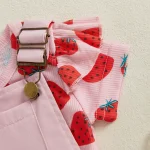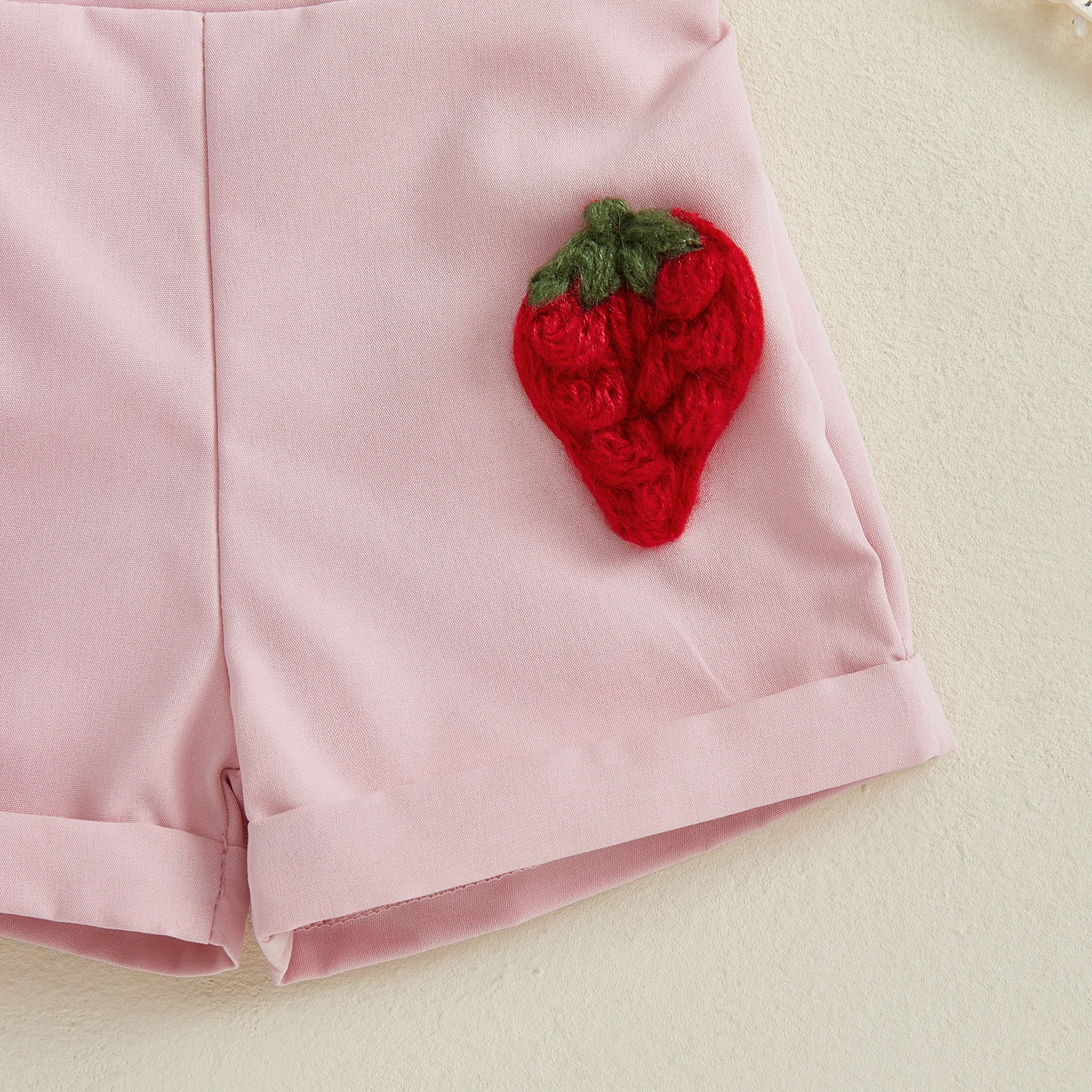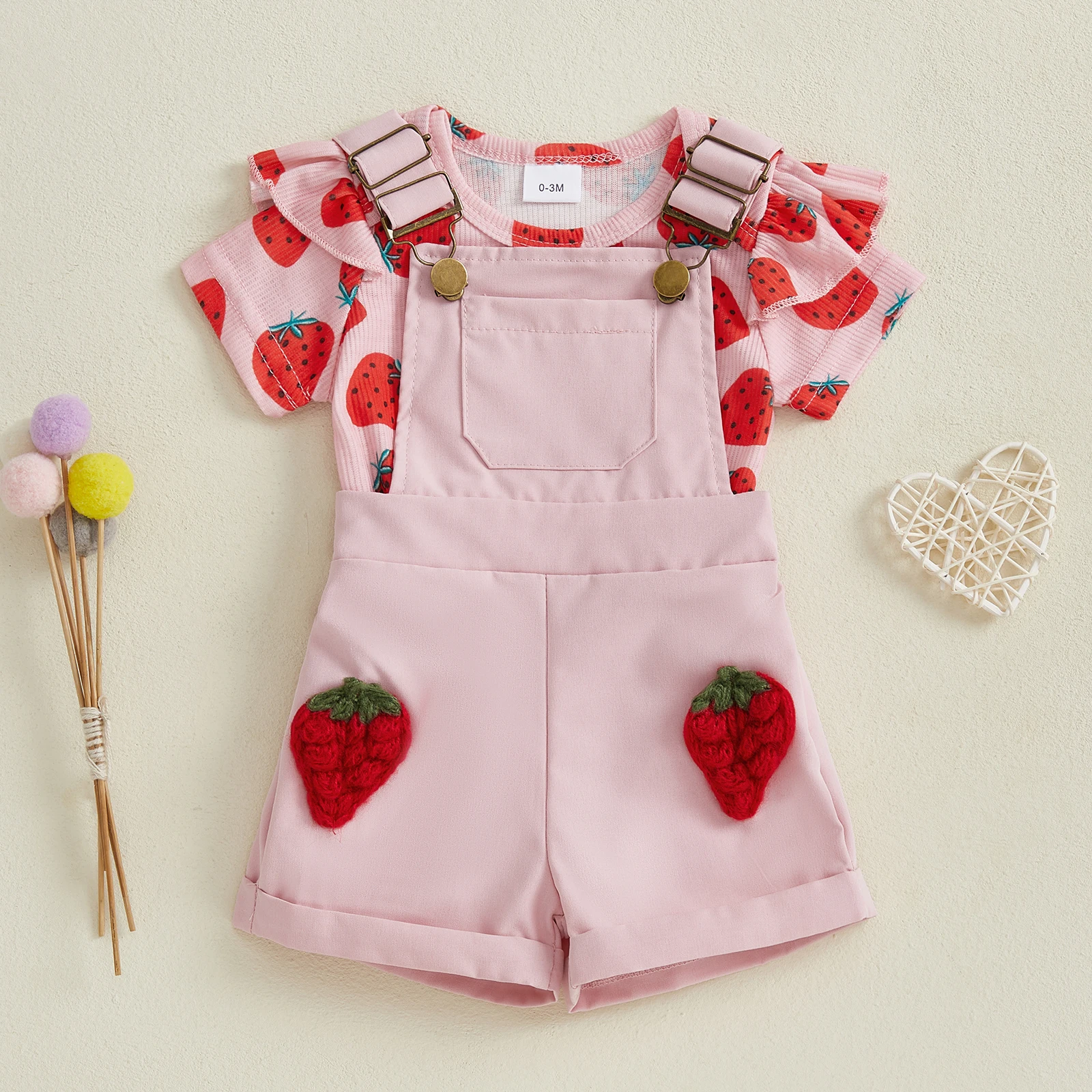 Baby Girls Summer Outfit Strawberry Print Embroidery Short Sleeve Romper and Casual Overalls Shorts Fashion Clothes