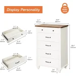 • 【Humanized Detail Design】Equipped with smooth metal drawer slides and handles, the drawers of the closet dresser are effortless to open and close. And the wood dresser is secured by anti-dropping device to reduce tip-over accident for more safety. It is worth mentioning that the distance between the bottom plate and the floor is large enough so that the robot vacuum cleaner can pass freely.