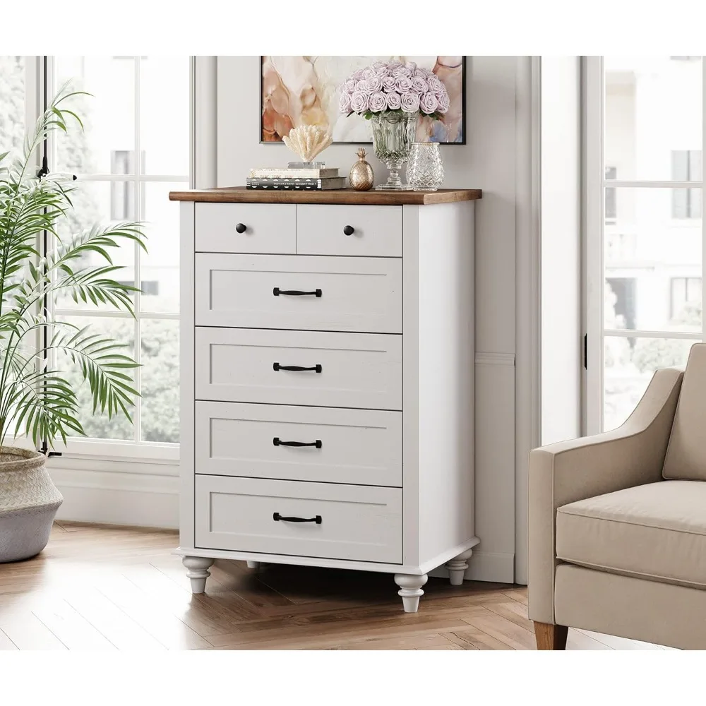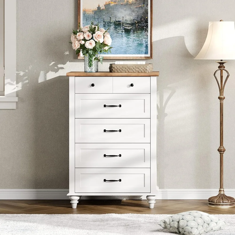 • 【Sufficient Storage Space】This white dresser nightstand only takes up small space while still provide plenty of storage space. Designed with 5 deep drawers and a wide tabletop provide ample space for sorting and organizing of daily necessities, such as clothes, socks, children’s diapers, toys, and other stuff for a clean and tidy space