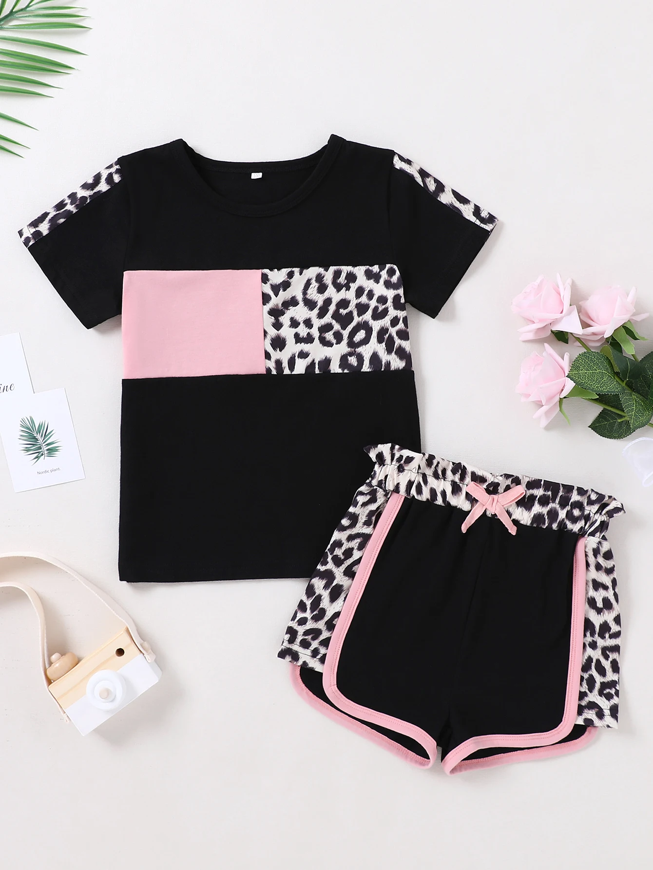 Classic Design: Featuring classic camo, pink, or black leopard print, our toddler girl clothing set includes a round neck tee and elastic shorts for a trendy and adorable look.