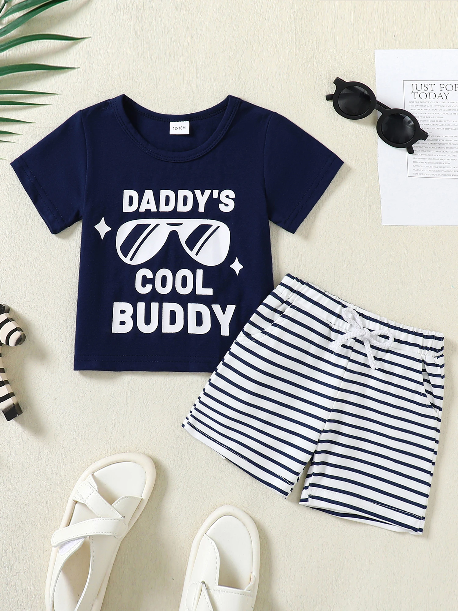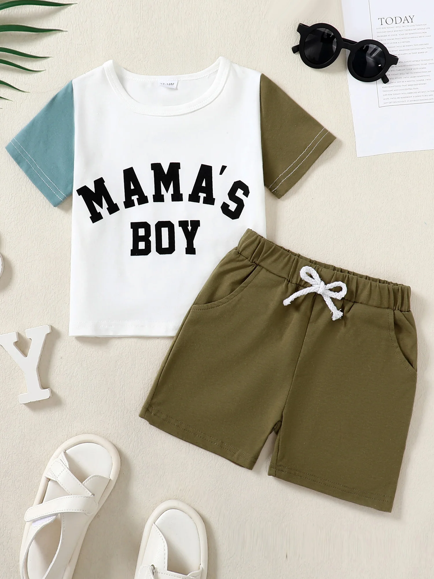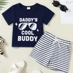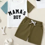 Features: The toddler boy clothes with fashion letter print “COOLER VERSION OF DAD””MAMA’S BOY”and glasses printed design on the T-shirt with short sleeve, crew neck, and a pair of elastic waist shorts.